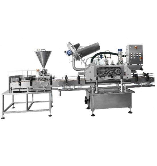 Machine able to fill dense, semidense, powder or granular products (depending on the type of dosing unit installed on the machine) into pre