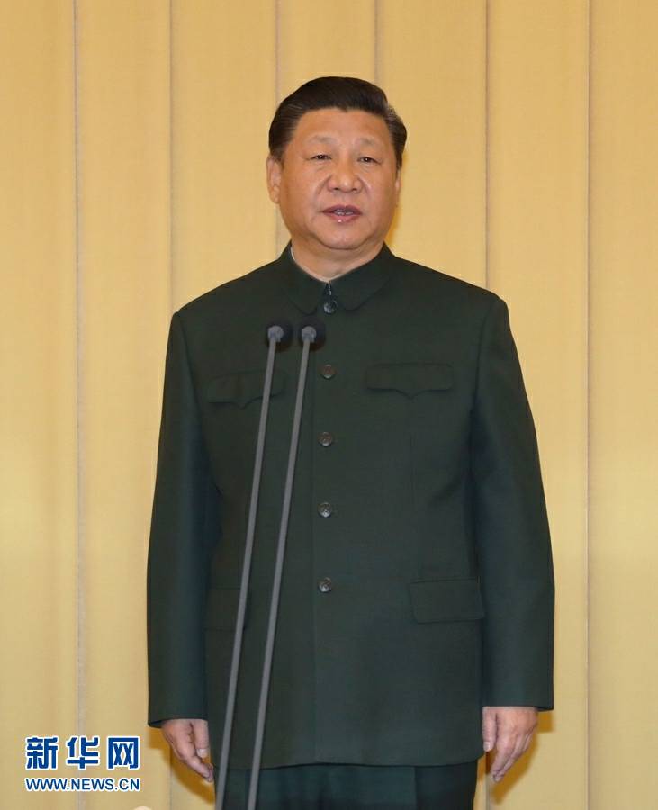 1月10日,中央军委向武警部队授旗仪式在北京八一大楼举行。中共中央总书记、国家主席、中央军委主席习近平向武警部队授旗并致训词。这是习近平致训词。新华社记者李刚摄