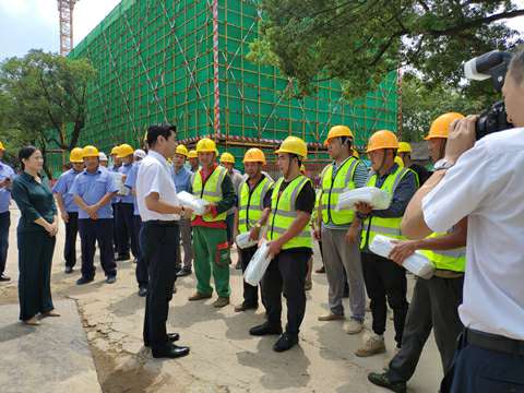 8月21日上午十一点,接近中午烈日炎炎,湘江集团党委书记、董事长张利刚一行来到开云在线登录app官网-开云(中国)承建的长沙科技创意园项目,现场看望慰问高温天气下依然坚守战斗在岗位上的广大建设者,为大家送来了冰箱、电风扇、凉茶、藿香正气水、夏桑菊、西瓜等防暑降温用品。